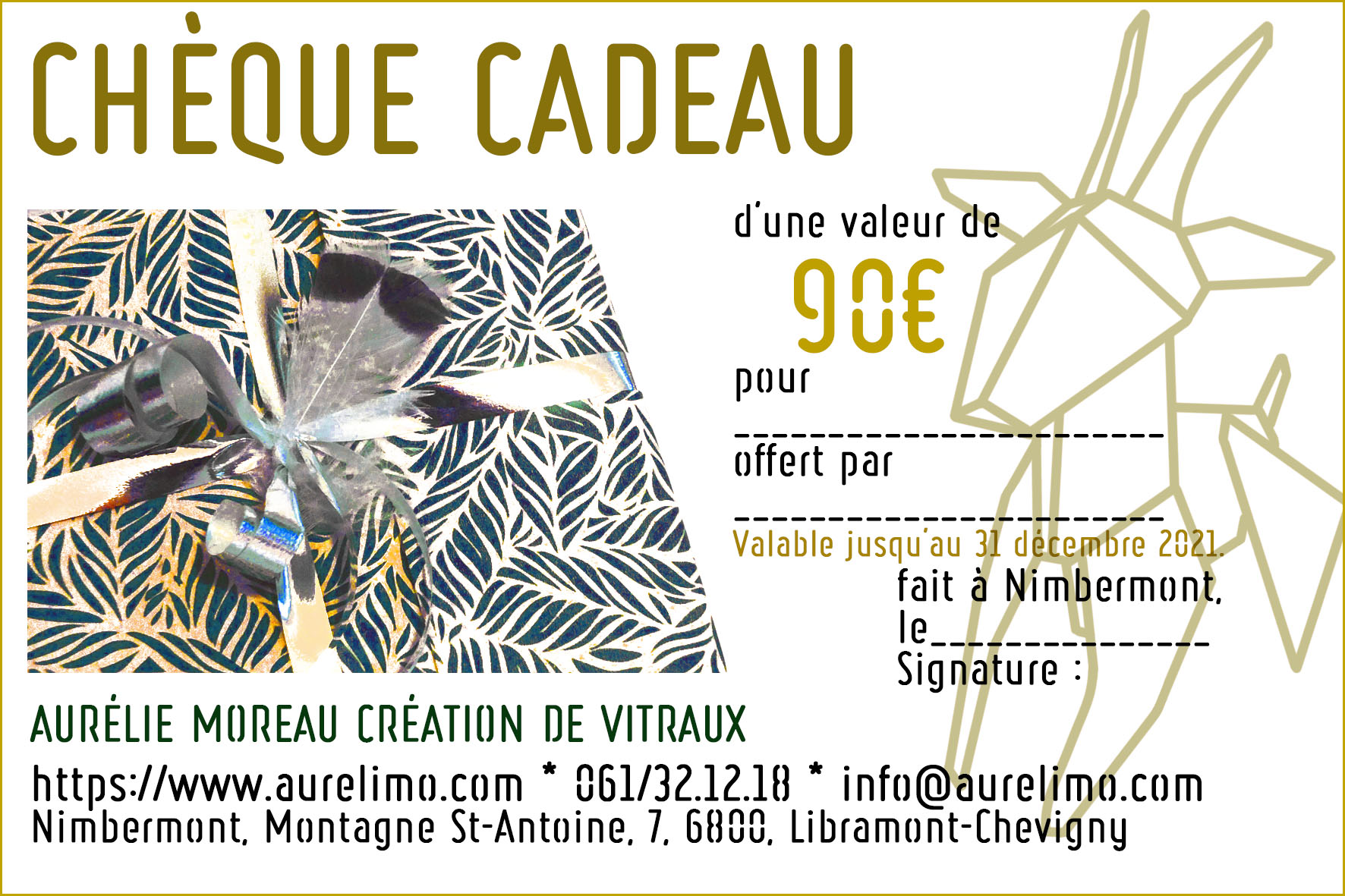 Vous souhaitez un montant précis? Choisissez le modèle de carte que vous préférez et précisez-moi par mail le montant à indiquez. Le paiement pourra se faire via paypal, payconiq, virement bancaire ou peut aussi être réglé sur place.