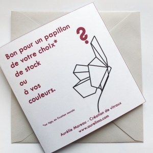 Carte sous enveloppe, à venir retirer à l’atelier sur rendez-vous. Possibilité d’envoi en Belgique.