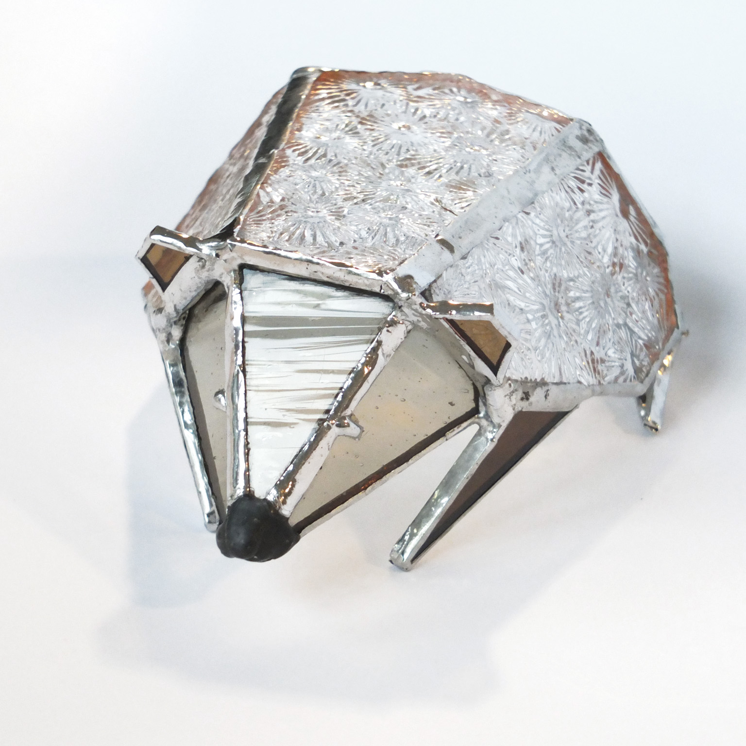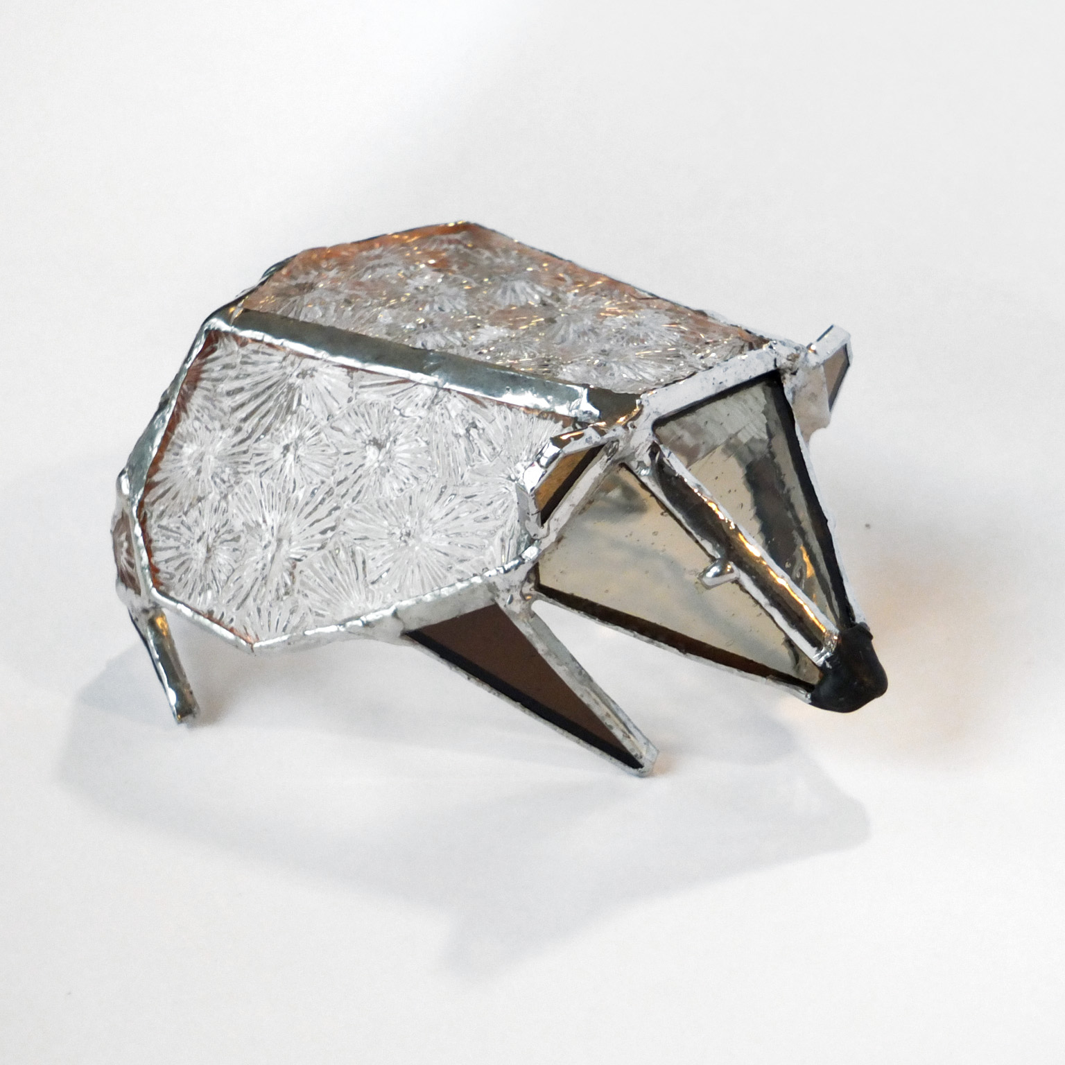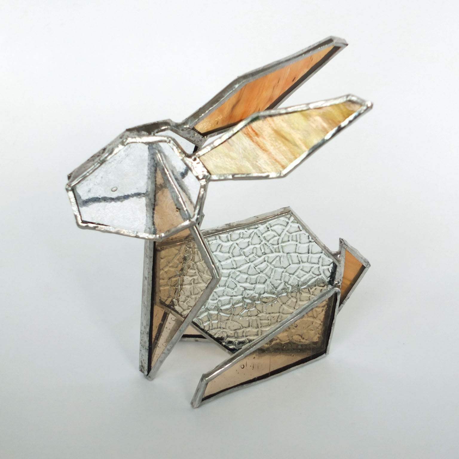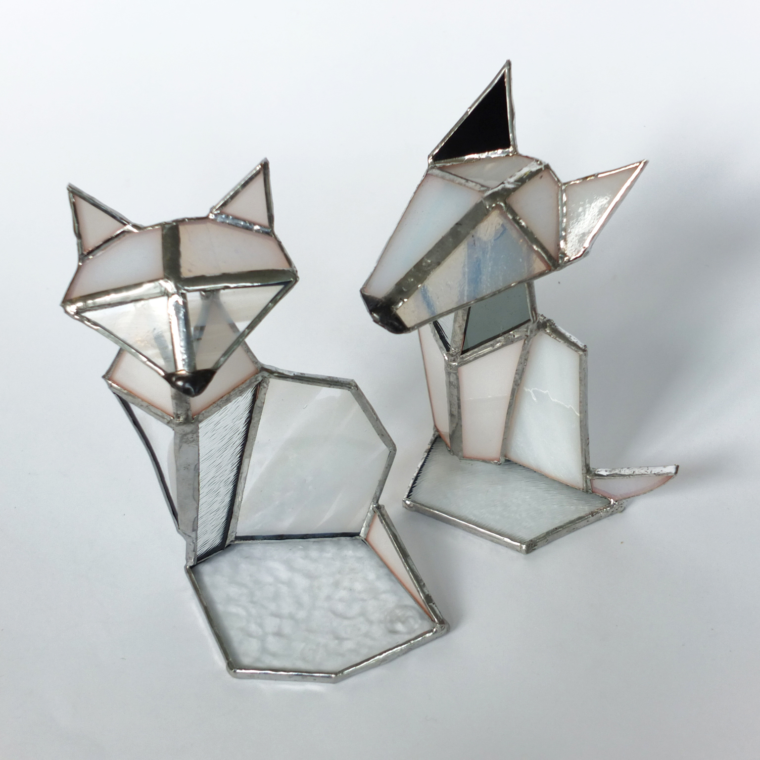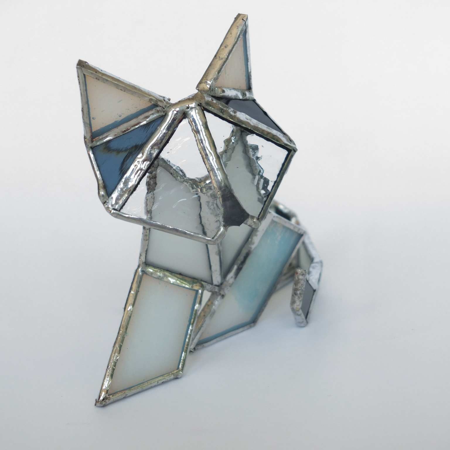 Renard de verre dans des tons oranges, aux oreilles rousses.