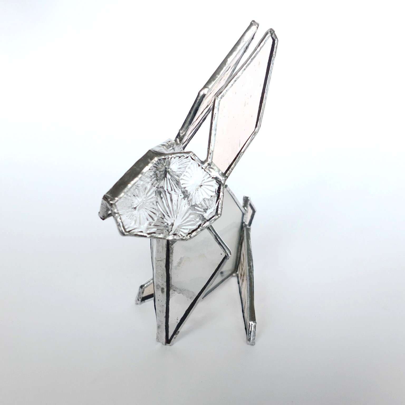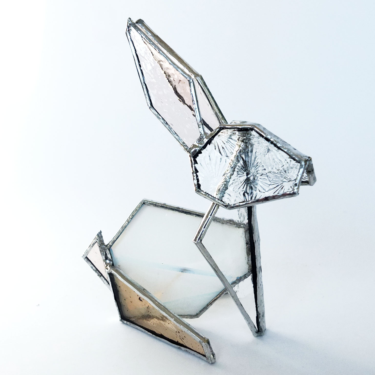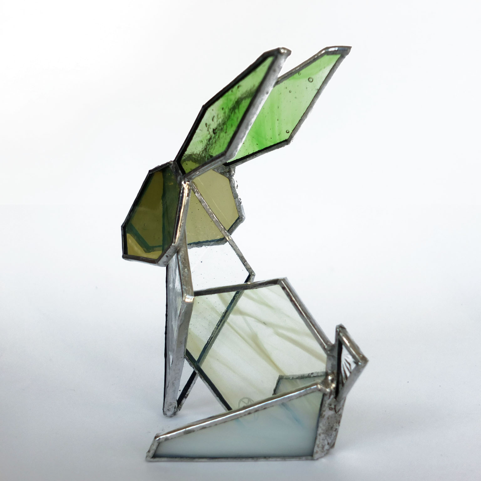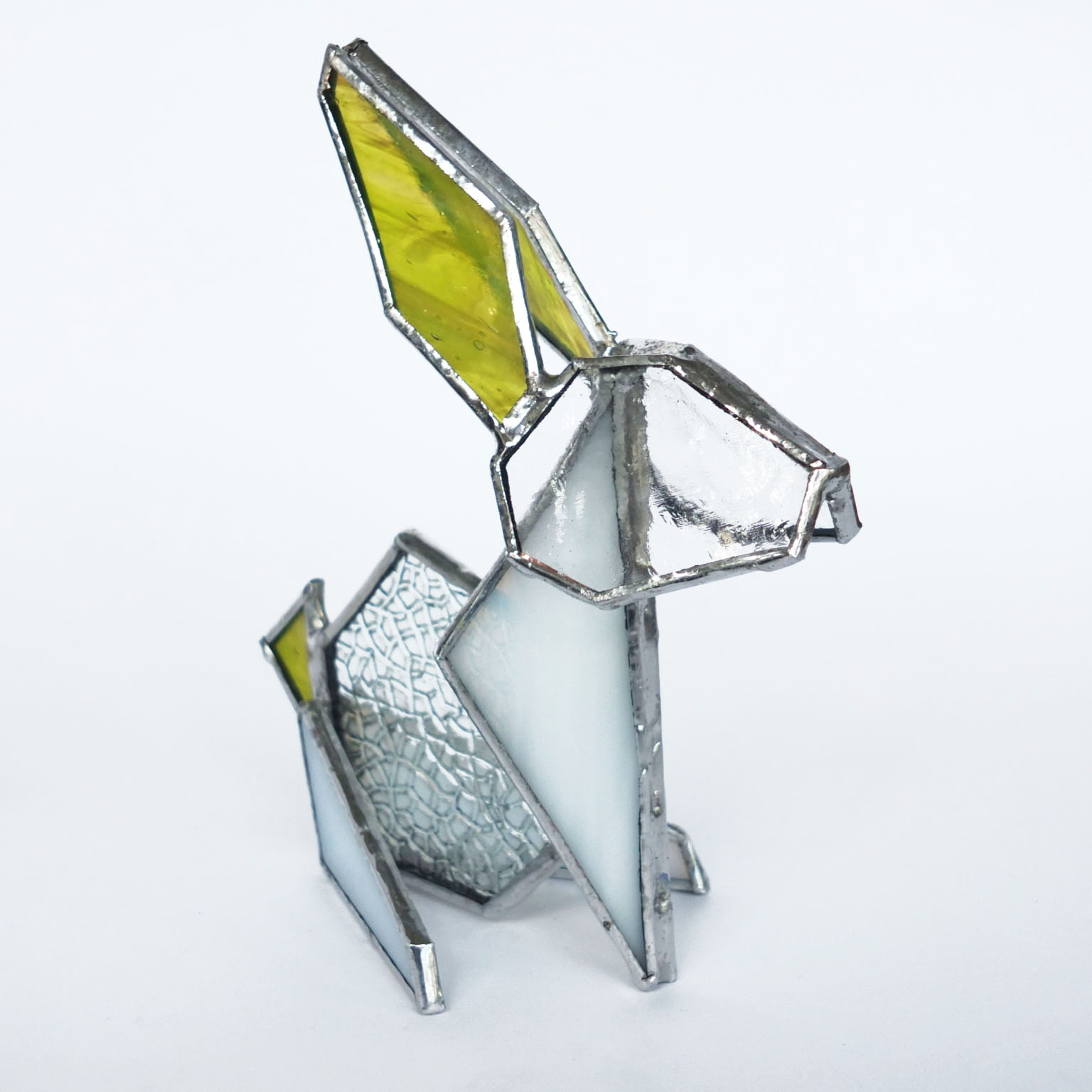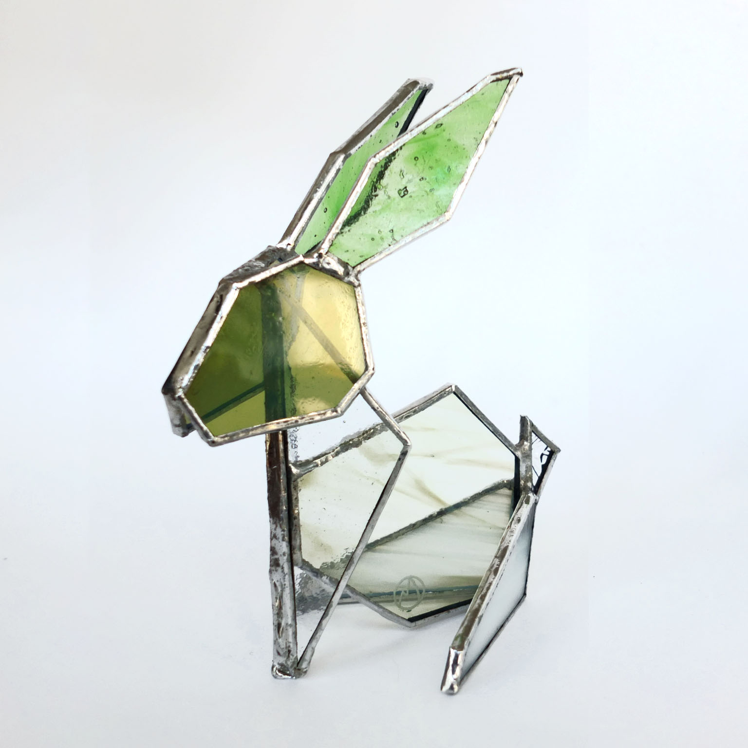 Lapin de verre blanc aux oreilles vert avocat. hauteur env. 12cm.