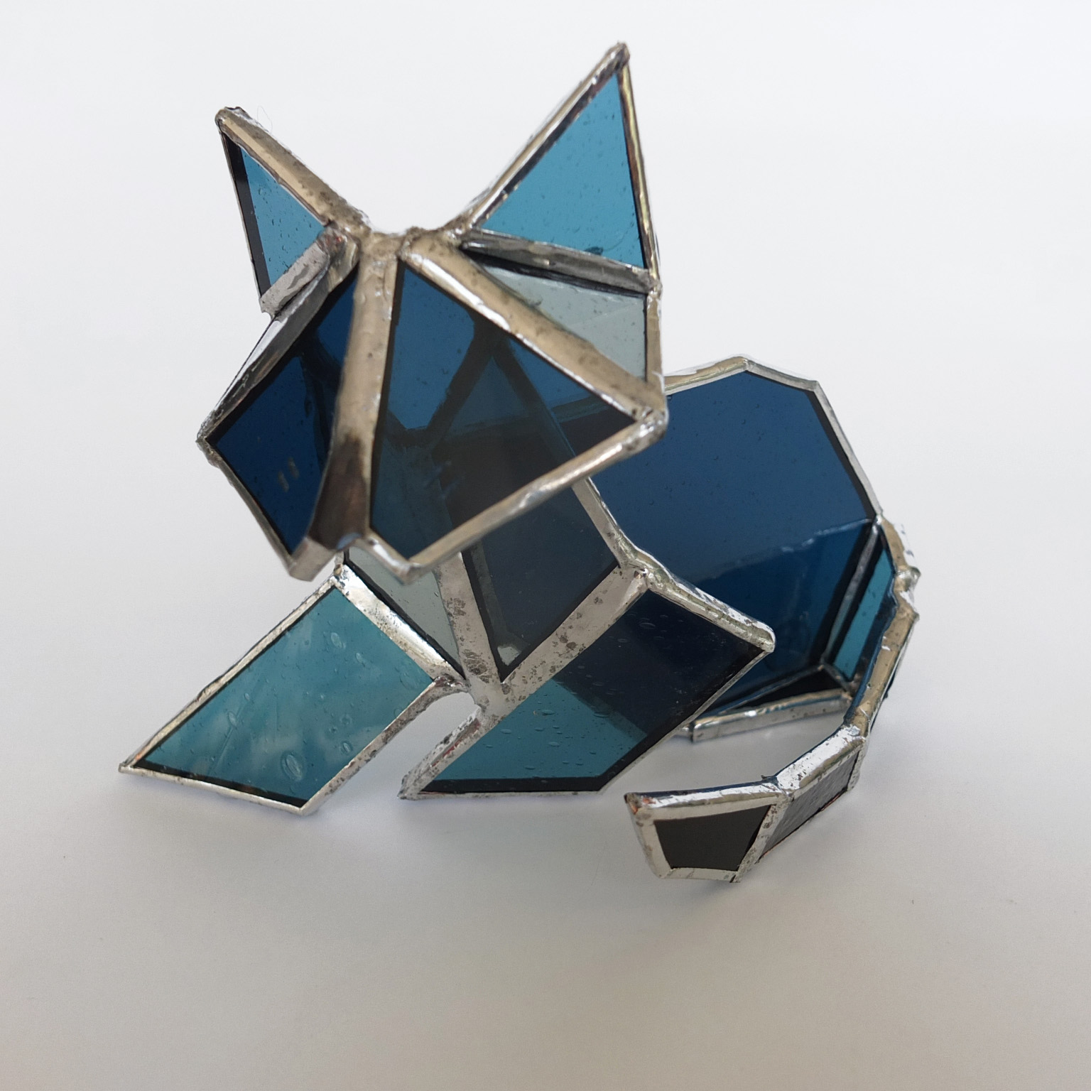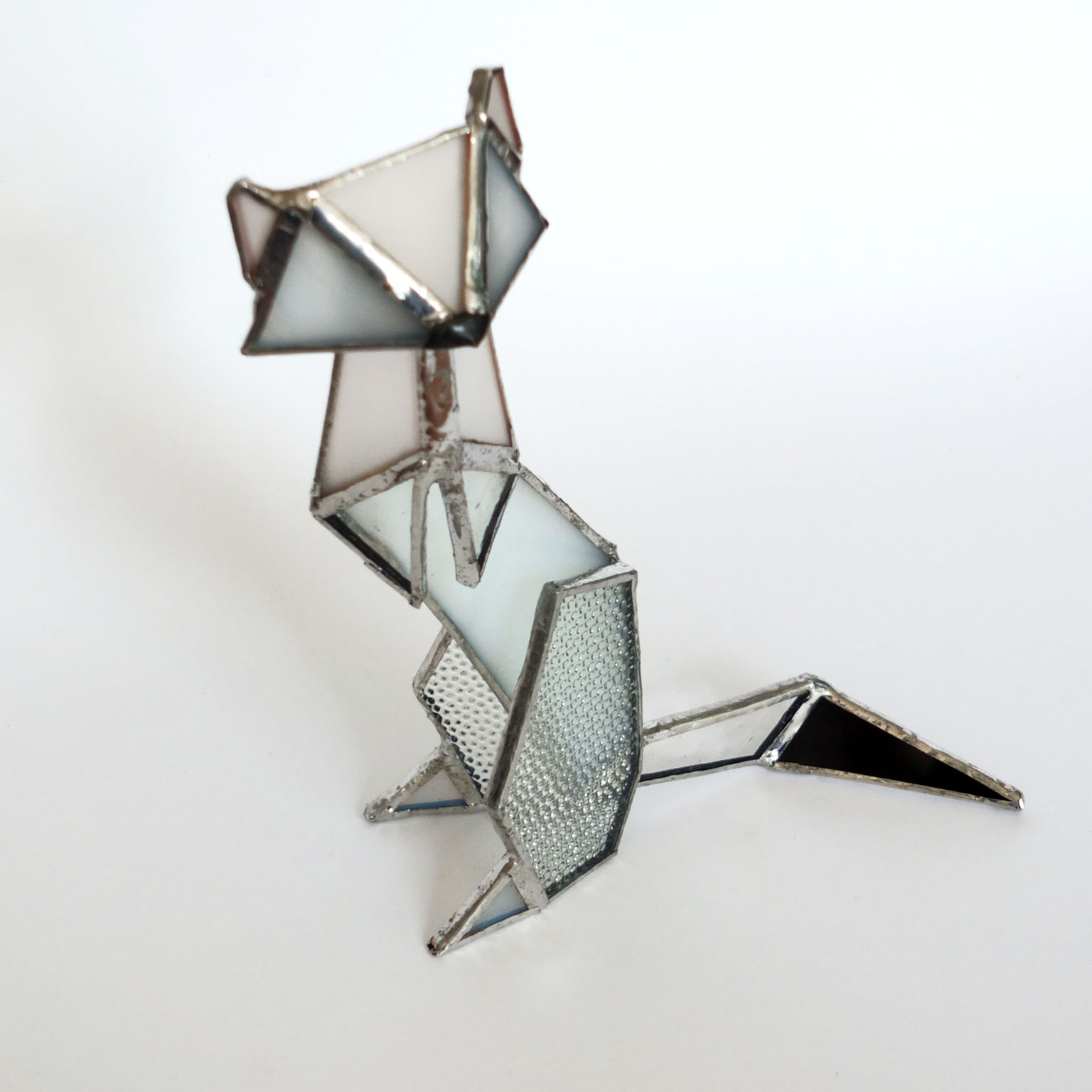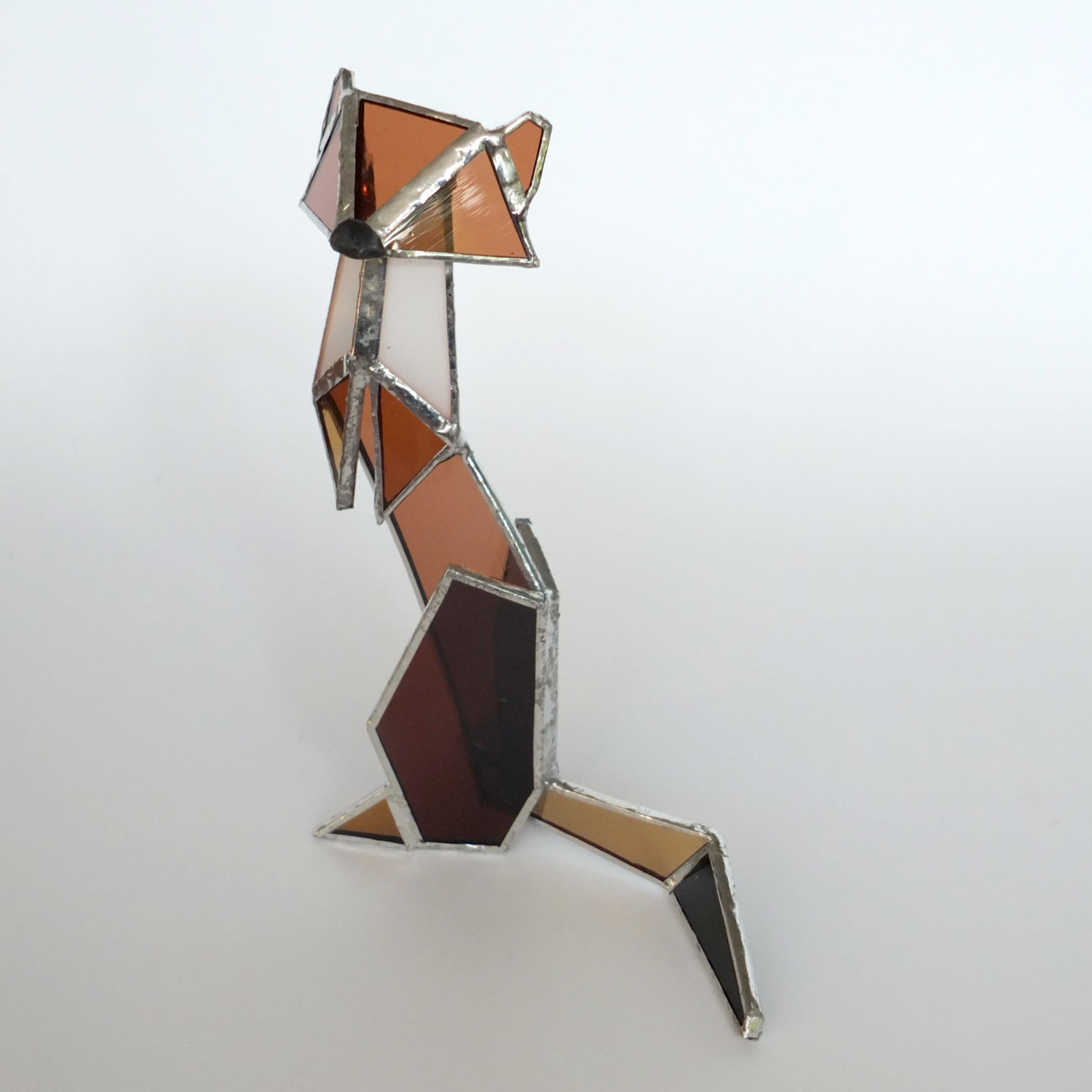 Renard de verre dans des tons roux et oranges, aux oreilles foncées.