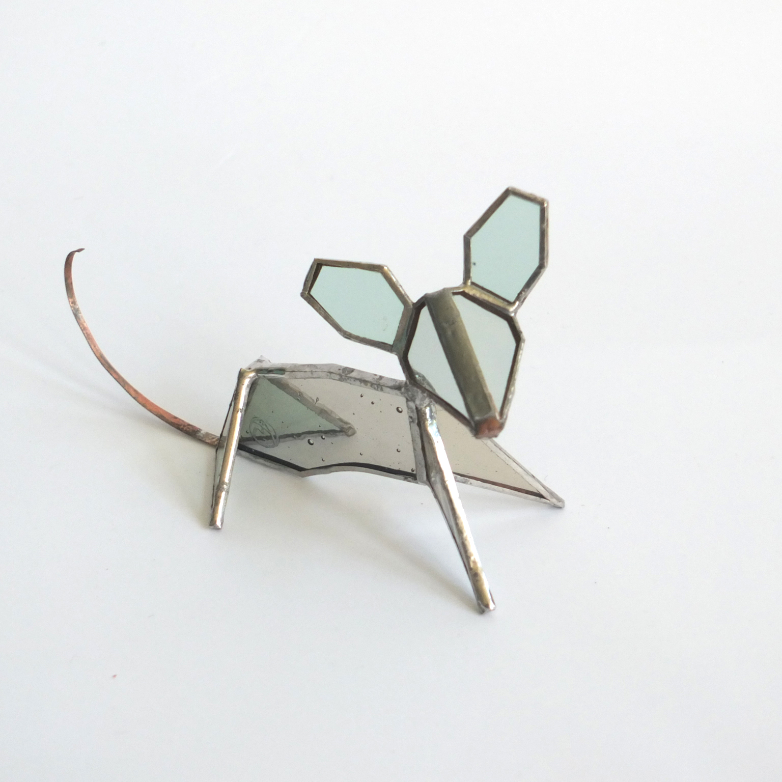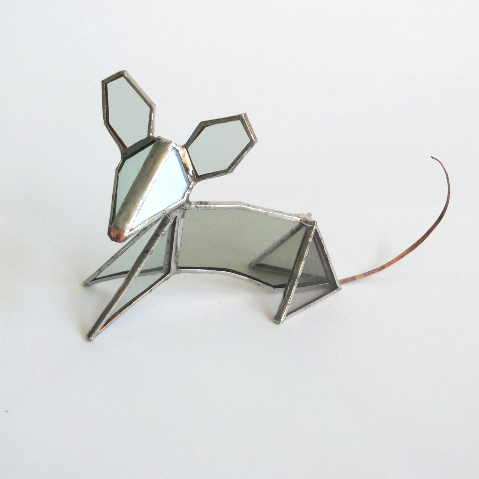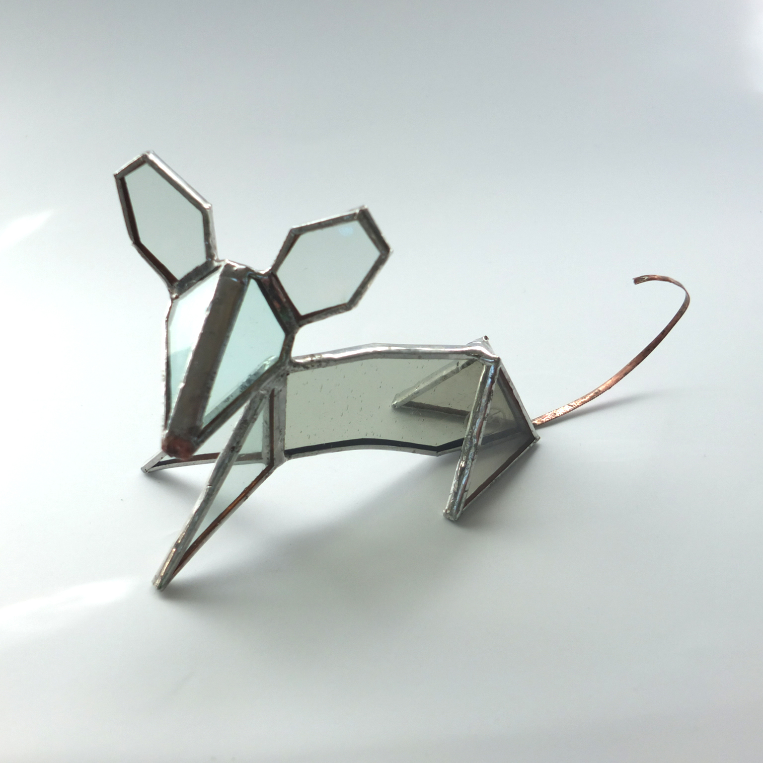 Souris de verre gris-vert. H6,5cm x 8cm de longueur (hors queue)
