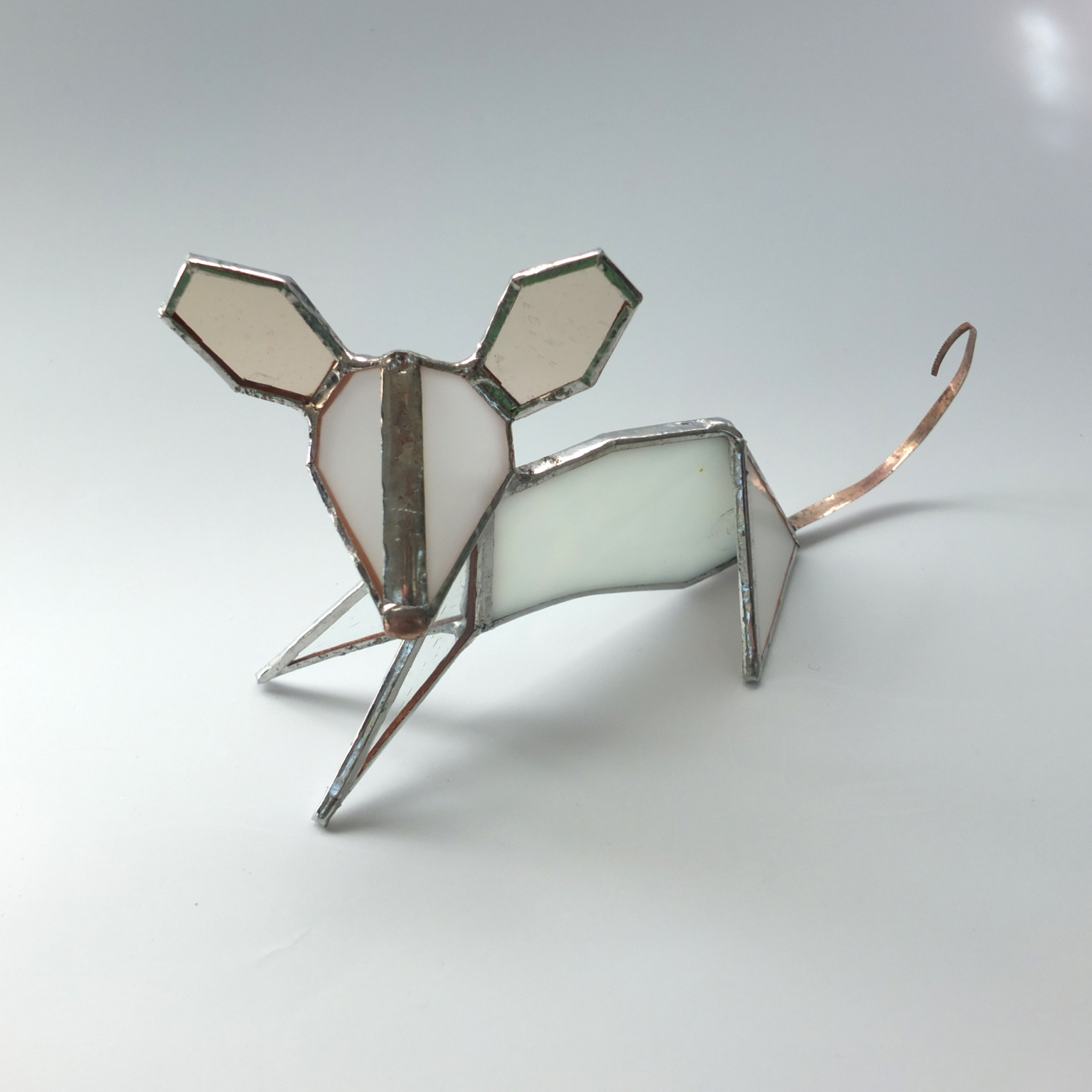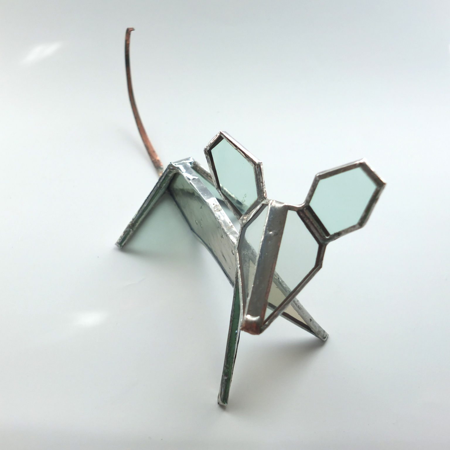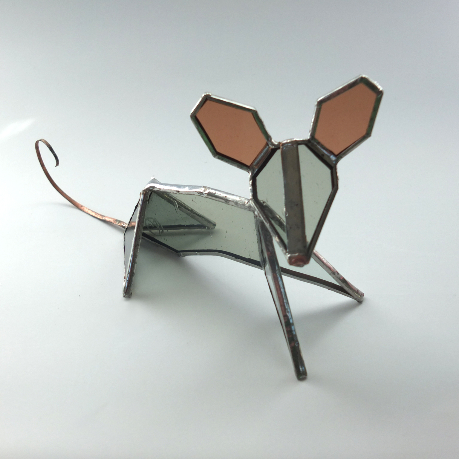 Souris de verre gris-vert. H6,5cm x 8cm de longueur (hors queue)