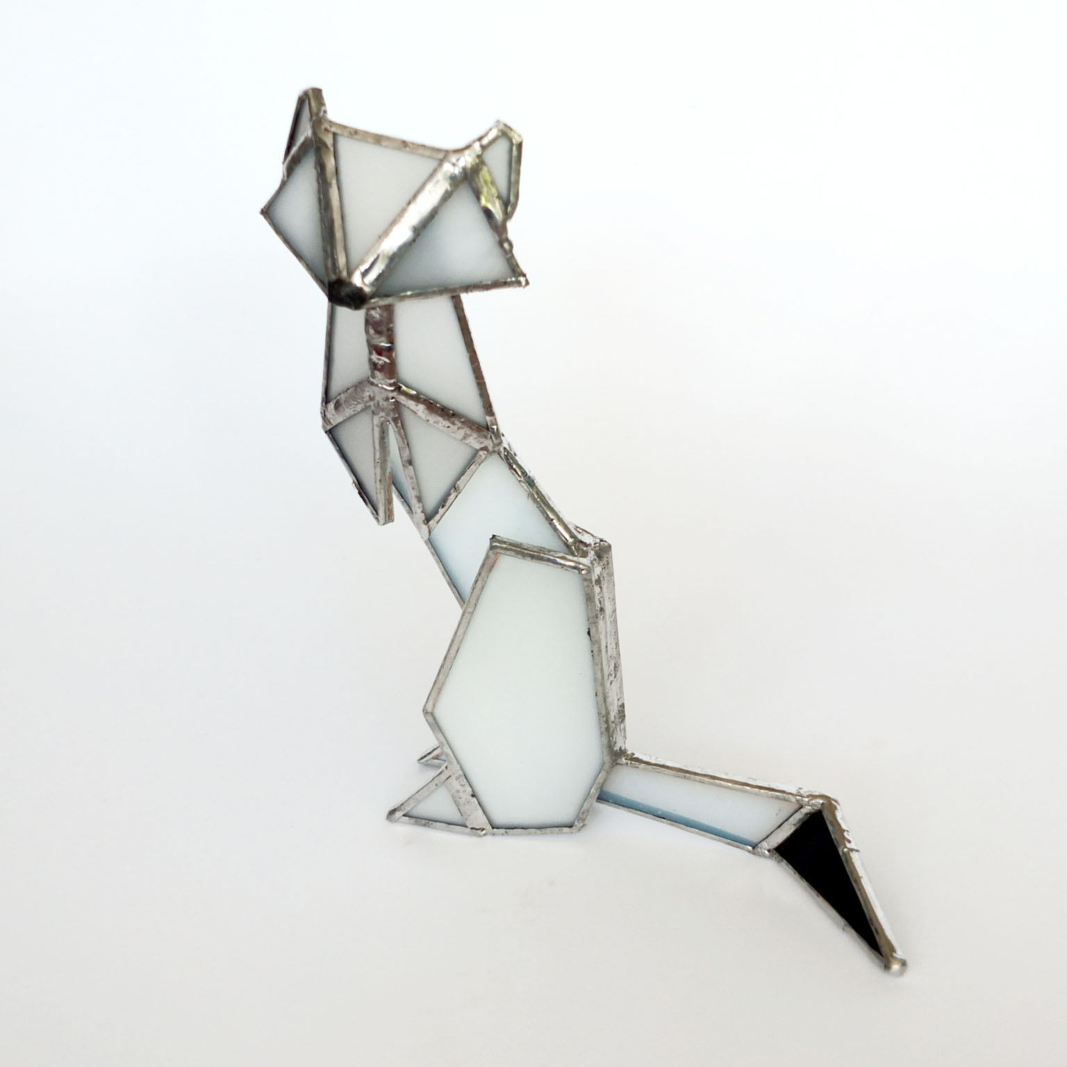 chien de verre blanc avec une oreille noire, hauteur 12cm.