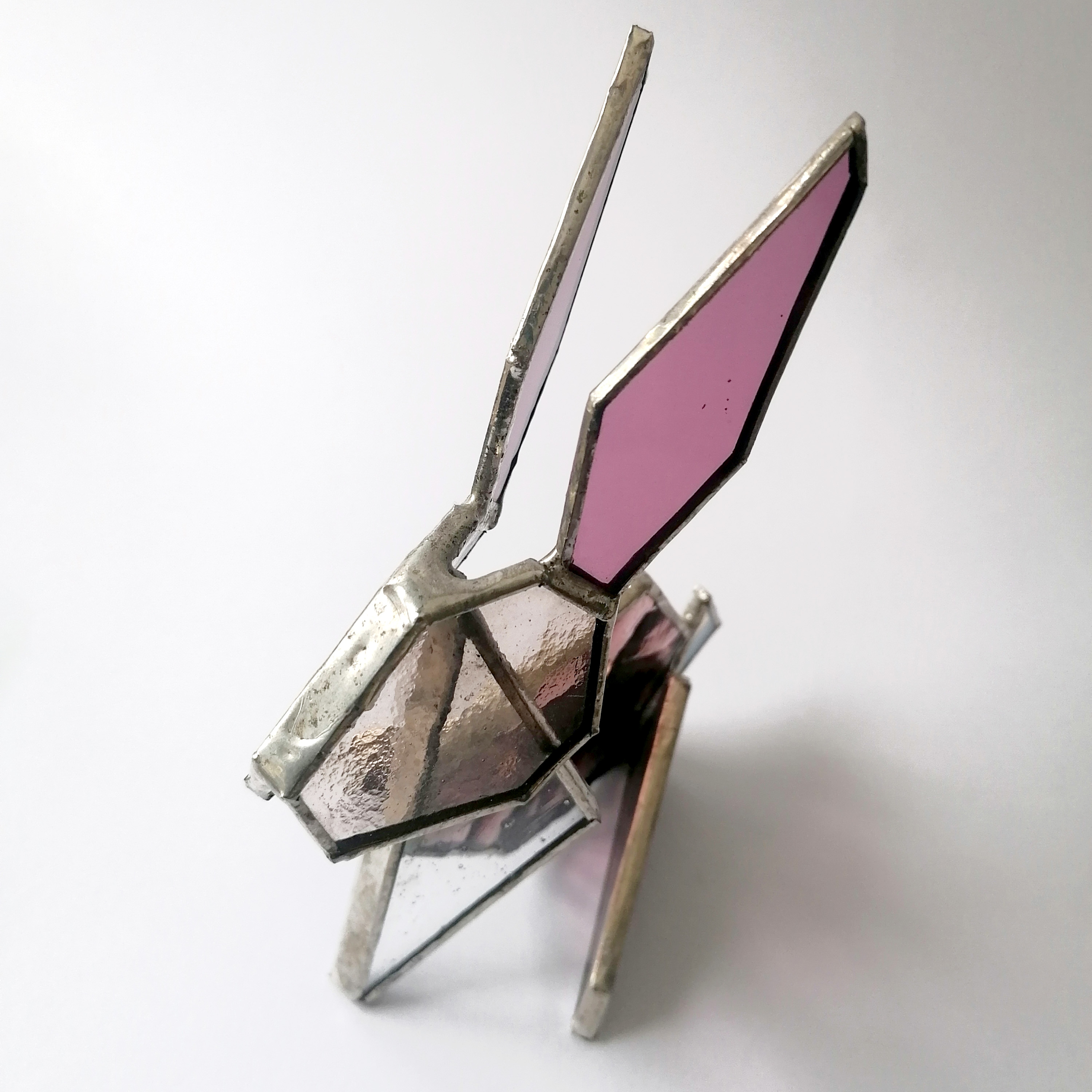 Lapin de verre dans les tons roses. Hauteur env.12cm.